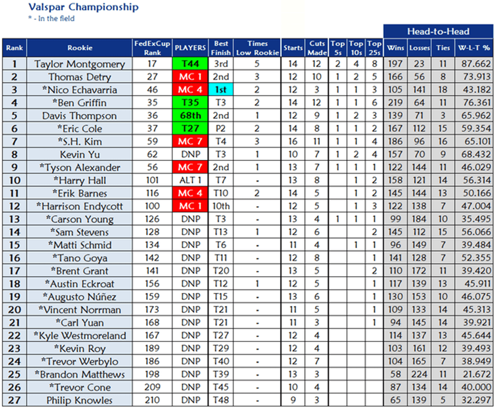 Ben Griffin +22500 – Made 49 pars on debut. Lost 5 shots to par on No. 18 with a double and triple to knock him out of the top 20. T35.