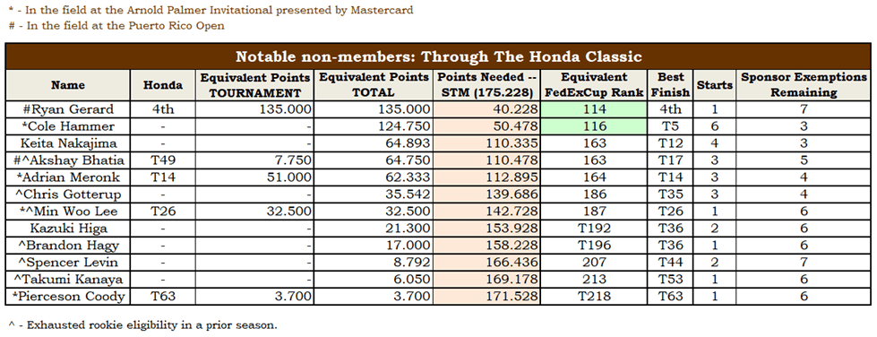 I’m not boring you with the table I’ve used over the years. It’s pretty obvious that this format has changed drastically and past results hardly matter. With the elevated/designated events, it’s obvious what is needed to succeed and it aint The Honda Classic.